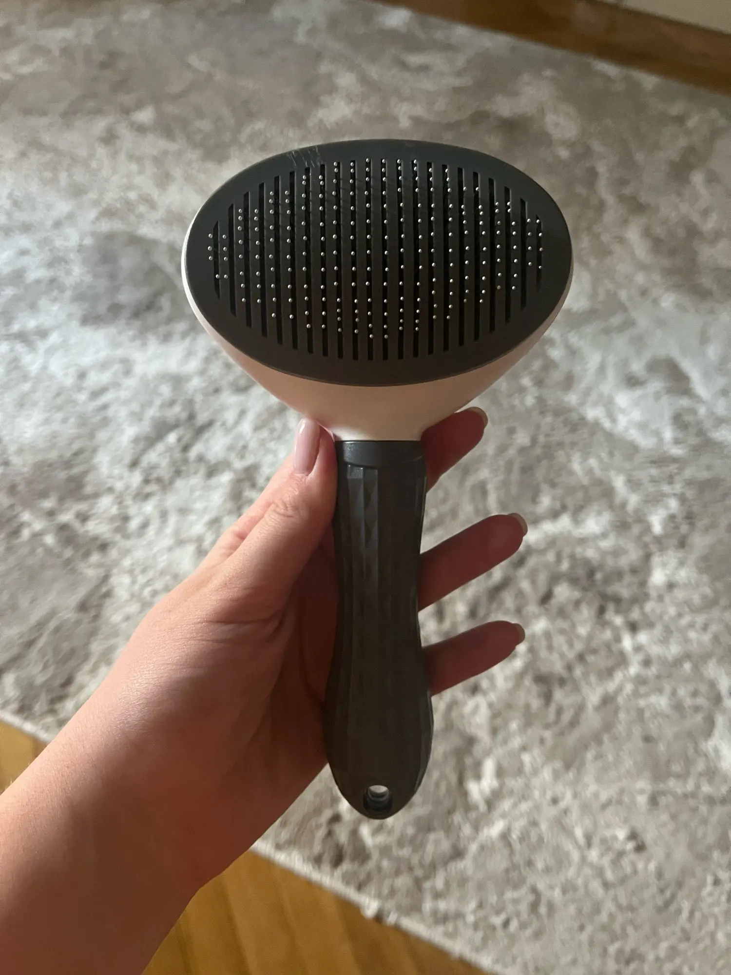 Ich bin mit dem Kauf zufrieden, der Kamm sieht gut aus. Es ist praktisch, dass es eine Option gibt, um Haare einfach mit einem Knopf vom Kamm zu entfernen.