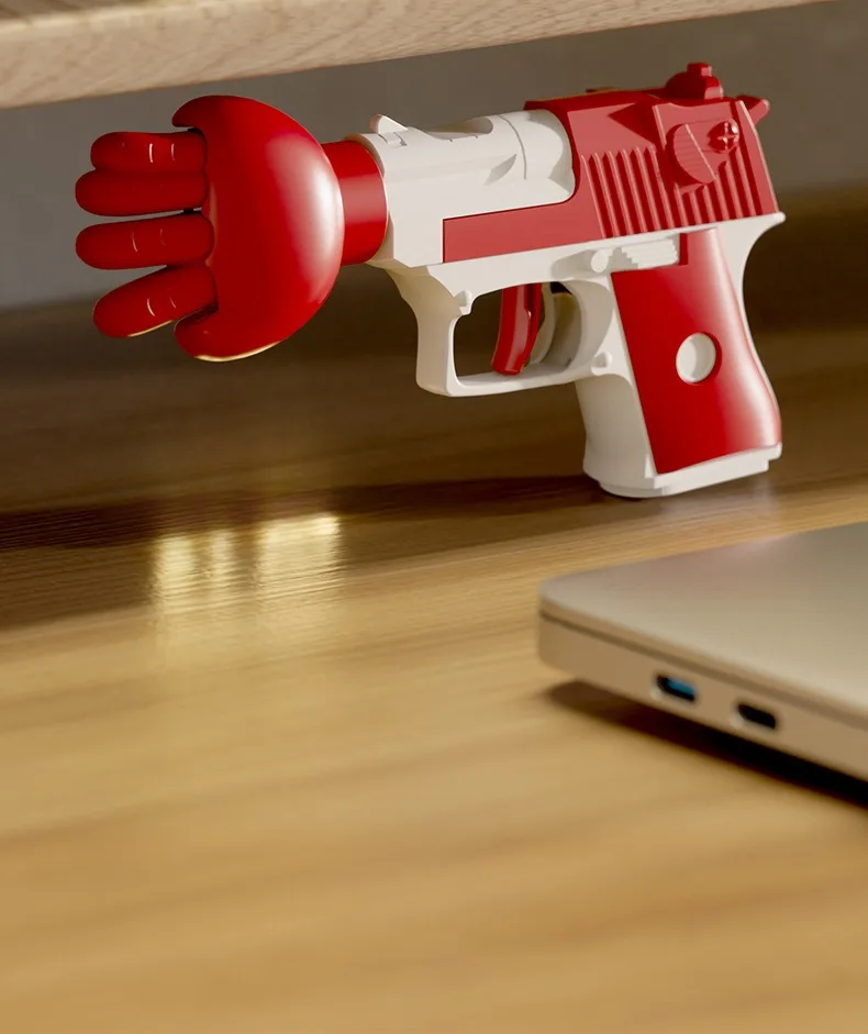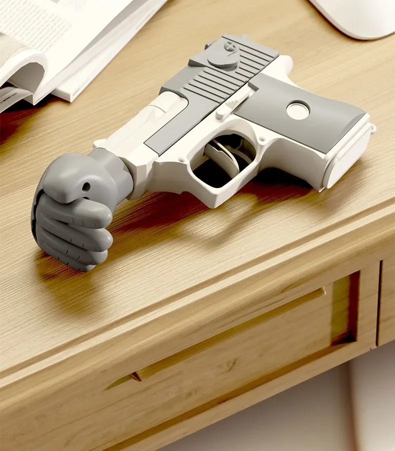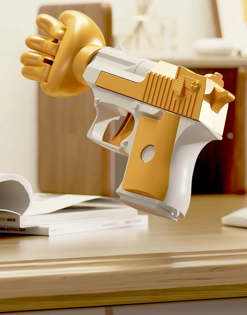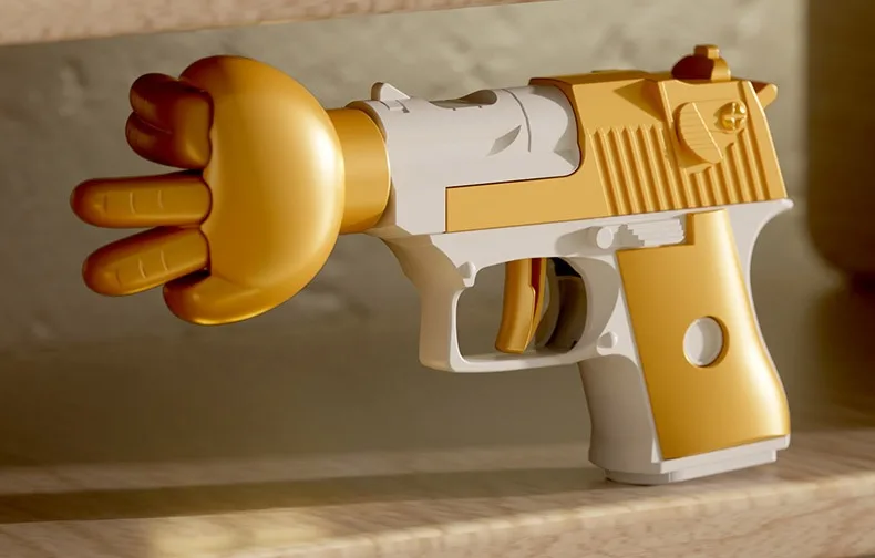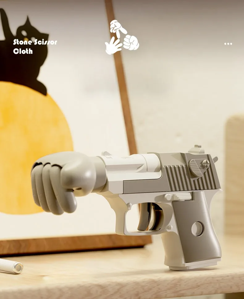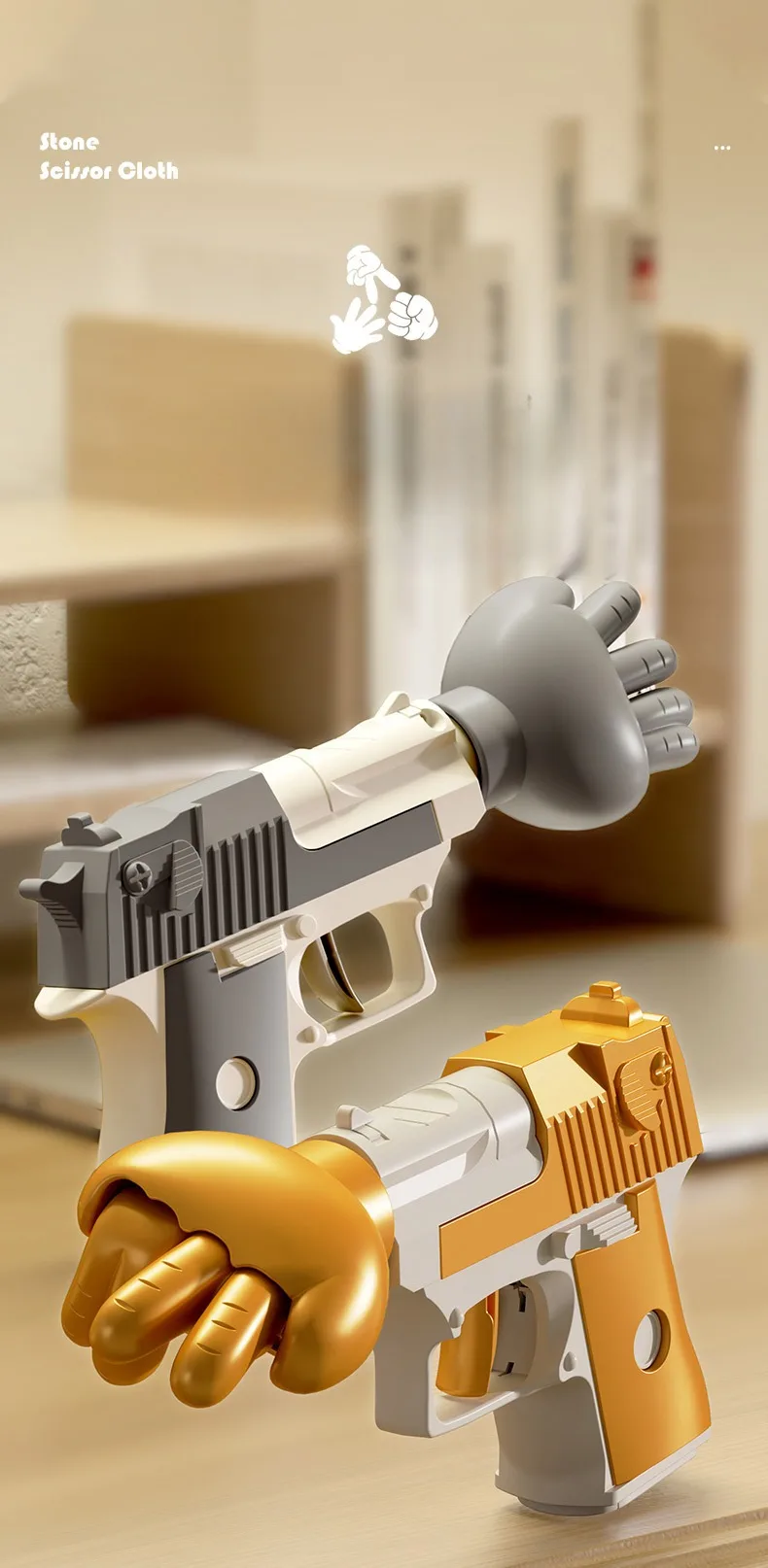 <p><strong>Schere-Stein-Papier war gestern - heute wird geschossen!</strong> Diese geniale Mini-Pistole verwandelt das klassische Fingerspiel in ein actiongeladenes Party-Erlebnis. Statt langweiliger Handbewegungen zeigst du jetzt mit deiner coolen Spielzeugpistole, wer hier das Sagen hat!</p>